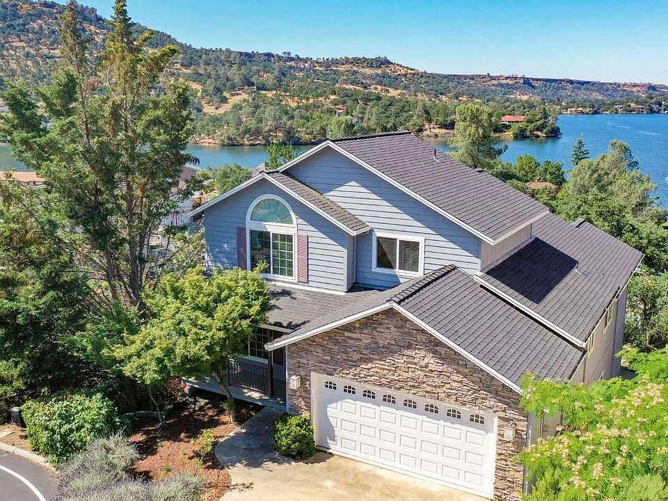 ENJOY LAKE LIFE LIVING & AMAZING SUNSETS! Located just 2 hours east of Bay Area in Copperopolis within close proximity to wineries, Yosemite, water & snow activities. On a quiet cul-de-sac with views of Lake Tulloch & Tabletop Mountain. 3 stories, 3 bedrooms, 3 bathrooms, 3,000 sq ft, 2 car garage. Main level has open floor plan with kitchen, dining & great rooms; laundry room, full bathroom & bedroom plus deck overlooking the lake. Custom cherry cabinetry throughout with granite & Italian tile in the kitchen. On upper level with views of the lake & Tabletop, master suite has walk-in closet. Master bathroom features jetted tub & walk-in shower. Downstairs has large family room plumbed for a wet bar, bedroom & full bathroom. Both bedroom & family room allow access to lower deck. Pre-wired with security system & stereo speakers. Roof Architectural grade composition shingles with 40-yr warranty & radiant barrier sheathing. Siding is LP SmartSide warranted for 50 years, prorated.