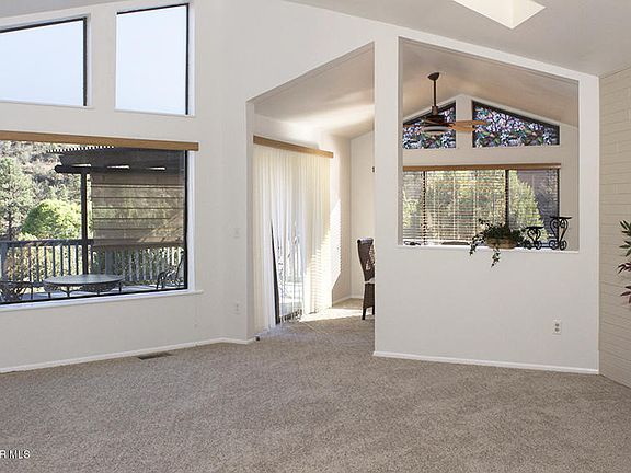 1 of a kind home in 1 of a kind setting! Its awe-inspiring design & location you will not see everyday. If you like nature, art & unique homes then this is 4 you. Soaring angled vaulted ceilings & skylights flood the space with light. Large deck looks on open space, mtn views, wildlife & rock outcroppings. Chalet type loft is romantic master suite with a walk in closet w/organizers, huge mirror & storage vanity area + a private Juliette deck. 2 & 3rd bdrms downstairs. Open floor plan, formal dining, greenhouse window, fenced dog run, NEW ROOF & CARPET 4/2018, 2 AC units (upper & lower), new LED lights, new retractable screen doors, insulated garage with cabinets, newer all electric kitchen appliances. MOVE IN READY!! You must see this artistic home to appreciate architecture & lot.
