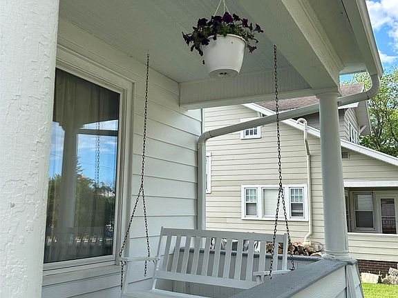 Take a tour of this 2 story home with beautiful woodwork, 2 pocket doors, and a fireplace. Relax on the large front porch or enjoy swinging on the porch swing. Entering the front door you will see an attractive oak staircase on your left and the fireplace on your right. A 19 x 25 sqft living room welcomes you. The pocket doors open to a dining area. Then on to the kitchen with two stair cases that are available for entrance to the upper level. Three bedrooms, a full bath, and storage that continues the beautiful woodwork. Large closets and a 12 x 6 bathroom await you in your travels through the house. There is an unfinished attic area that you can use your imagination for completing it. An upper level sun porch to sit and enjoy your attractive yard. The foundation of the house has been repaired. Laundry area is in the lower level. Detached single stall garage with garage door openers. I can't adequately describe the woodwork, pocket doors, fireplace, and the size of the large rooms. This is a must to see.