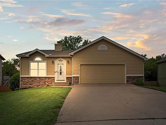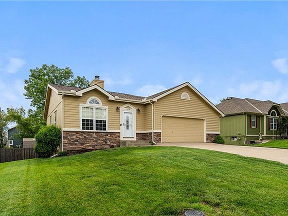 Step into comfort, space, and serene surroundings in this charming reverse 1.5-story in Raymore! This home welcomes you with brand-new carpet on the main floor, soaring vaulted ceilings, and a cozy fireplace that anchors the open-concept living and dining area. The kitchen offers a beautiful view of the tree-lined backyard and features durable tile flooring, a pantry closet, and convenient main-level washer and dryer hookups—adding functionality to its inviting charm. The primary suite overlooks the private backyard and updated deck, and includes a spacious walk-in closet for easy organization. Downstairs, the fully finished walkout basement offers incredible flexibility with two additional bedrooms, a full bathroom and a large living area—ideal for guests or extended stays. From the basement, step into the screened-in porch, which leads to the refreshed deck—the perfect spot to unwind or entertain while enjoying peaceful views. Additional highlights include a privacy fence, large storage shed, 2-car garage, and all appliances included. A truly versatile home in a desirable location.