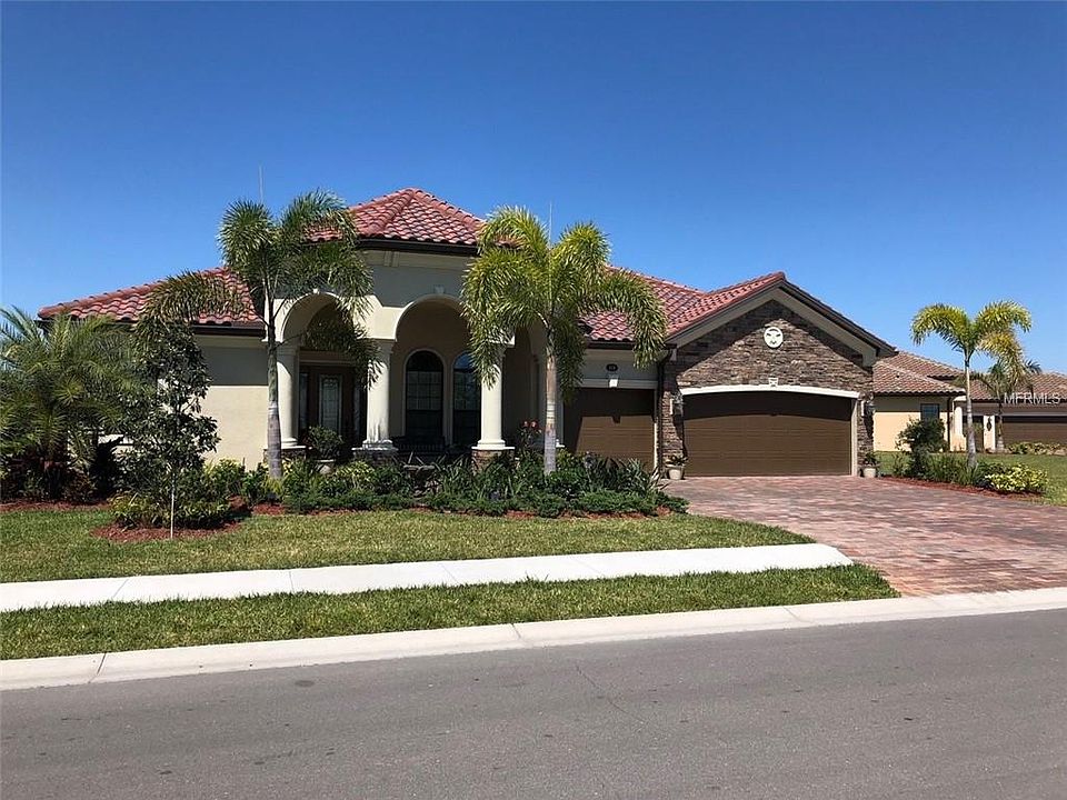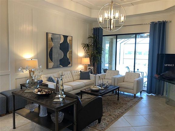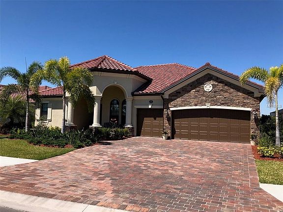 Rare opportunity to purchase former model home at River Strand with many custom upgrades and features! Beautiful TOSCANA floor plan with 4 BR, 3 BA & family room, 3 car garage and heated swimming pool with spa. ** Full Golf, Tennis & Social family membership included.** This very well maintained SMART house comes with many features such as an electric fire place, tray ceilings, crown & decorative molding and custom light fixtures.** Relax by the crystal clear SALT water pool and enjoy beautiful views of the tranquil lake that spans the back of the property. ** River Strand Golf & Country Club is an upscale gated community with 27 holes golf course designed by Arthur Hill, 2 club houses with resort style swimming pools, fitness centers, Tiki Bar, restaurant, tennis & pickle ball courts and several satellite pools.** One time $2500 Capital Contribution ( $1,500 River Strand, $1,000 Heritage Harbour) required from buyer at closing. Food minimum $500/year.