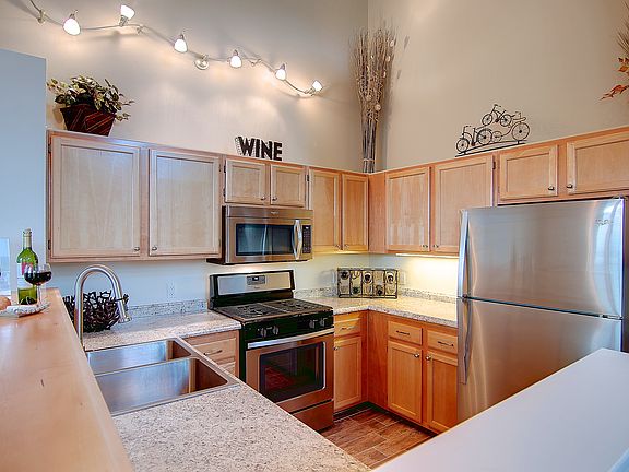 Wow! Beautifully updated 3BD/2BA townhome with attached two-car garage! Improvements include new flooring in kitchen/baths/garage entry; new appliances/counters/sink/garbage disposal in kitchen, new lighting in kitchen/baths, new paint and clean as a whistle! This unit shows fantastic and has ski mountain views and rear access to a courtyard-like setting. The garage is spacious and includes cabinetry, an extra refrigerator and plentiful storage under the stairs. Homeowner dues are also affordable and include snow removal from driveways!