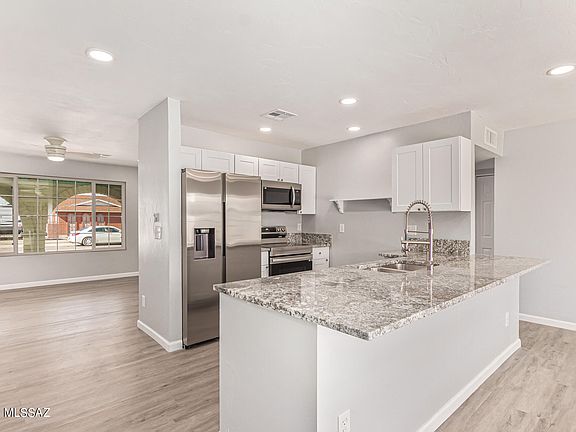 Stunning remodeled Single Story, 3 Bedroom, 2 Bath, Sparkling Swimming Pool/heated & Spa. Brand new appliances including Side by Side Refrigerator, Glass top Stove, Built in Microwave, Granite Kitchen Countertops, Pantry, Newer AC, 2 Car Garage plus additional parking and double gates on both sides. Large covered patio and spacious yard with views of the Catalina Mountains. No HOA! Range pricing $400,000-$425,000. *Additional kitchen cabinets being installed. Compromised windows will be replaced.