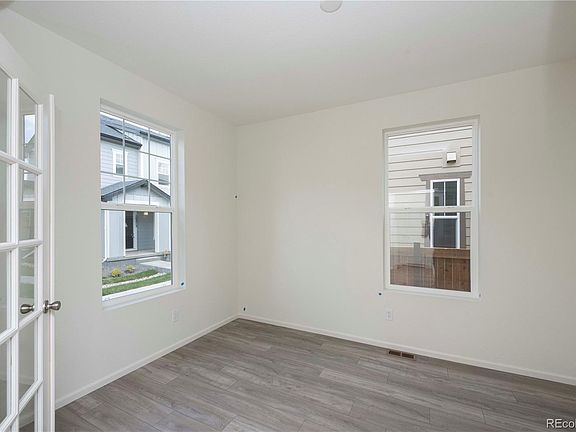 This beautifully upgraded, brand new home is available for immediate move-in. It has 3 bedrooms, 2.5 bath, office with french doors, loft, private side yard, unfinished basement and attached 2 car garage with full size driveways. It features an open friendly kitchen, and oversized great room that is perfect for family and friends gatherings! Main level vinyl plank flooring, granite kitchen counter tops, trendy maple rye cabinets, 2 bathtubs, gas range, and much more! The Metro district covers public common area maintenance, alley maintenance, and alley snow removal. The HOA covers front yard maintenance. The homeowner is responsible for leaderwalks and driveways, and all side yard maintenance.Master-planned community four miles south of DIA corridor. Low Maintenance paired homes with private side yards and full size driveways. Commuter friendly; near I-70 and E-470. Short drive to local shopping, dining, and entertainment, including Southlands Shopping Center and The Gaylord of the Rockies. The Listing Team represents builder/seller as a Transaction Broker.