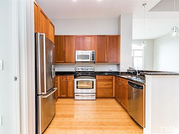 Urban lifestyle to make your own. Work/Play in heart of Raleigh: light-filled end penthouse open-plan condo perched hi on 10th FL. 12 ft ceilings, 2 bed/2 bath. Den/office. W-I closets, laundry room & W/D. 2 park spaces--secure garage & private storage. Hardwoods. Granite counters. N, S & E views, 9 ft windows--drapes & remote blinds. Walk to: restaurants, nightlife, museums, market & shopping. New: roof 2021, HVAC 2018, HW heater 2017. Nest. Pool, grill area, fitness & recreation room.