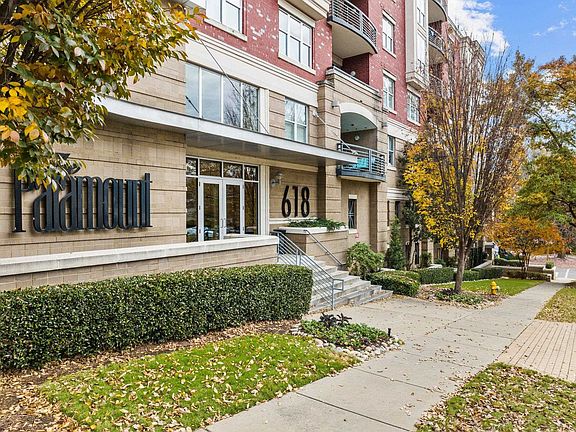 Chic condo located in sought after Paramount. Live steps away from downtown dining and entertainment. This interior corner unit has fresh paint and move in ready. Dining area is highlighted by trey ceiling. Kitchen boasts granite countertops, pull-outs, deep one piece sink, pot filler, tile backsplash. Primary bedroom is bright and spacious with can lights and its large bath has a Japanese soaking tub, separate shower, and HUGE WIC. Separate laundry room with side by side washer and dryer (hard to find in a condo) Each bedroom and the LR has a door to the balcony overlooking the pool. Residence room, gym, grilling area on 5th floor and rooftop terrace on 10th floor. Gated parking with 2 assigned spaces and storage unit.