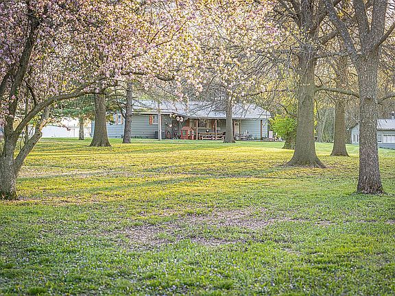 Located on a dead end road at the edge of town. Sits on a two acre lot, this home has the feel of country living, but with the ease and access of town. Since we have owned the home, we have had the entire roof redone (rafters, sheeting, metal), refinished the kitchen, updated the bedrooms, added on a covered back patio, updated the central heating and air, put in a storm shelter, and had a building put in that could be finished out for an apartment, studio, or hobby building. The large back patio, firepit, and backyard are perfect for entertaining or just enjoying the large trees and wildlife that frequent the property.