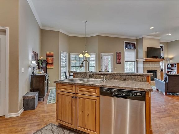 Back on the market due to buyers financing. This all brick/faux stone home in Nixa will wow you with it's many custom features including hardwoods, crown molding, and gas range. The open floor plan, split bedroom design and 3 car garage are popular features of this home. Two gas fireplaces, walk out basement and large fenced yard make this a great family home and ideal for entertaining. Within walking distance to schools and the Community Center.