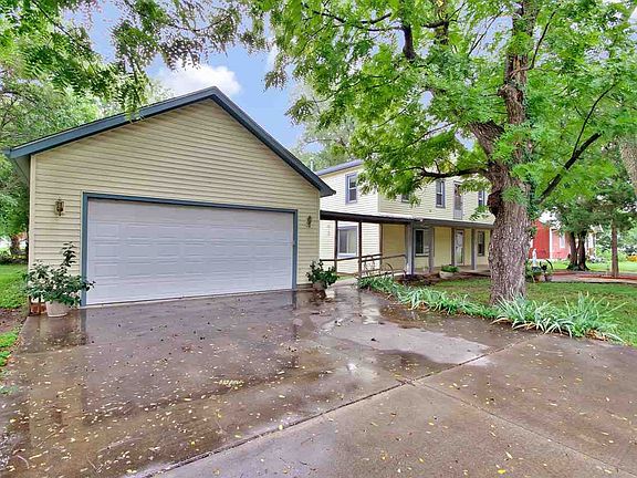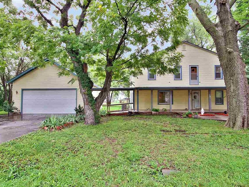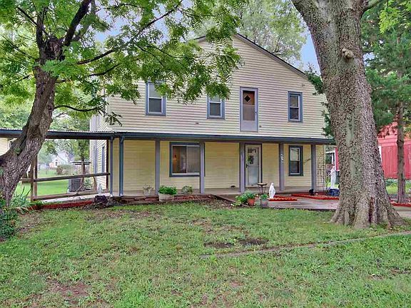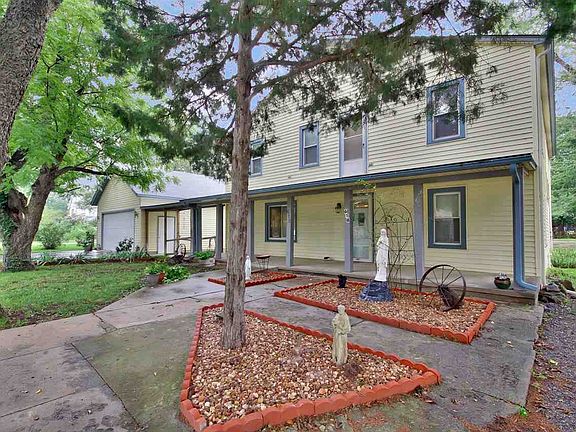 It's like 2 homes in one. This well maintained two story home, with an over sized lot is located in Belle Plaine KS. This 4 bedroom, 2 bath has a lot of extras. The main level has 2 bedrooms with walk-in closets, and one bath with a walk-in jetted tub, and a hand held shower. Also, on the main level is an over sized kitchen, dining room, and living room. The laundry room is also on the main level, with a mudroom and place for a freezer. There is an osmosis system for drinking water. As you go up the spiral staircase, you will see a very large upper level. Perfect as a separate living quarters. There are 2 bedrooms with over sized walk-in closets, and 1 bath. There is a sitting area, over sized family room, and a cedar closet. There is also a large bonus room with lots of shelves and storage, which could be used for sewing, crafts, or for an office. There are 2 exterior entrances to the upper level. This home has an detached over sized 2 car garage, 2 driveways, alley access, a handicap ramp to the front door, a covered front porch, covered guttering, a fire pit, and a concrete base for an out building. Within walking distance to local schools. The air conditioner, and the roof are new!