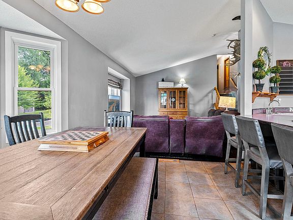 Discover the perfect blend of comfort and convenience in this spacious home ideally situated near lakeside living and scenic trails.Upon entering, you'll be greeted by a spacious foyer that opens up to the main level kitchen, living room and dining room. The kitchen features ample cabinet space for all your culinary needs. Convenient patio door that leads to the backyard off the kitchen area. The upper level has a private primary bedroom with full primary bathroom along with a walkin closet. The additional bedrooms provide plenty of space with great walk-in closets as well. A desirable floor plan for those looking for some and privacy, the 4th level features laundry and fabulous finished storage area, a family room that is finished with pine ceilings for an Up North feel and wired for surround sound. 2 additional rooms and bathroom finish off the 3rd level of the home, 1 room can be used as a bedroom or extra family room or home office the other is set up for a bedroom.Escape to the front porch to enjoy an evening sunset over North Center Lake, mature trees and a yard that is great for playing games or plenty of room for gardening. Oversized 3 car garage that is finished with plenty of shelves and higher ceiling for added space and use! Neighborhood park just down the road along with various restaurants and shopping nearby. Whether you're enjoying a leisurely stroll by the lake or exploring nearby trails, everyday feels like a vacation in this desirable neighborhood.