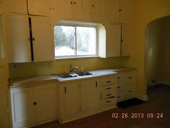 Aluminum sided 1 1/2 story. Large bedroom in dormer with closet and attic storage. Laundry hook-ups in nook. L-shaped living room. Probably needs a roof. Furnace & water heater are gone. Please provide proof of funds with offer.
