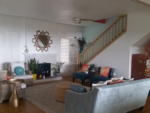 Spacious, well-furnished home on the Mesa of Santa Barbara with spectacular ocean view including the Channel Islands. On the other side of the house one could see the Santa Ynez Mountains. The house has two floors, with one indoor staircase and one outdoor staircase, facing the ocean, and has about 3,000 square feet, plus a detached office ~300 square feet also facing the ocean. It contains (1) two living rooms, (2) two master bedrooms (one containing a king size bed; the other a queen size bed), both with a double-sink bathroom, and a fairly sizable patio, (3) three other bedrooms (two with independent but separate bathrooms, and one with ocean view currently being used as an office). An additional bedroom is currently being used as a gym, which can be changed back as another office/bedroom. In total, the house has two living rooms, six bedrooms, and a detached office. The house is located in a safe, convenient neighborhood, within walking distance to Washington Elementary School, restaurants, stores, banks, markets, a playground, and the beach. It is in the district of the Washington elementary school (one of the best in Santa Barbara). By car, it is 5 minutes to downtown, 5 minutes to Santa Barbara City College, and 15 minutes to University of California Santa Barbara. Within a three-minute walk there is a bus stop for an express bus X15 to UCSB that takes 15-20 minutes. The house was remodeled and renovated when we moved in towards the early 2013, including new floor and new paint. The rental is available by the end of this August for a full year. Please contact Janice (jwang.sb@gmail.com) directly for further information, more house photos, the rental details and questions. Thank you!