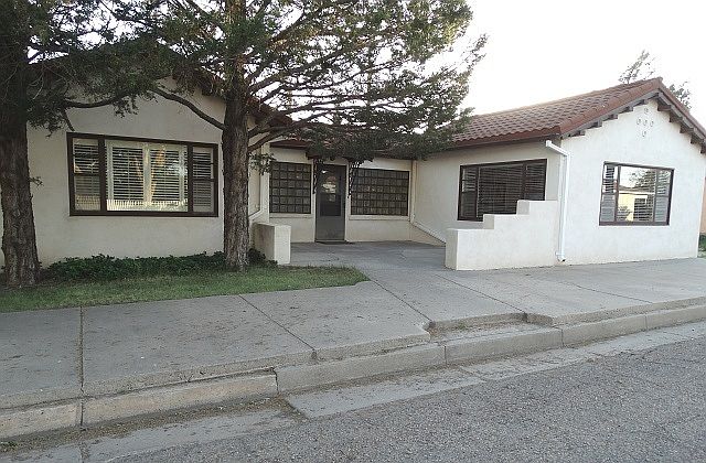 One of it's kind in Clayton, NM. This beautiful Spanish style hacienda sits on 5 city lots. The main house is a charming 3B/1.5B with beautiful hardwood floors, wood viga ceiling in the living room with a fireplace, small reading room with a wood fireplace, tiled kitchen and large utility room. But that's not all----there is a 1B/1B guest house with all the amenities. 2 enclosed courtyards and covered patio provide for a wonderful get away for evenings with family and friends. Mature trees and landscaping in place.