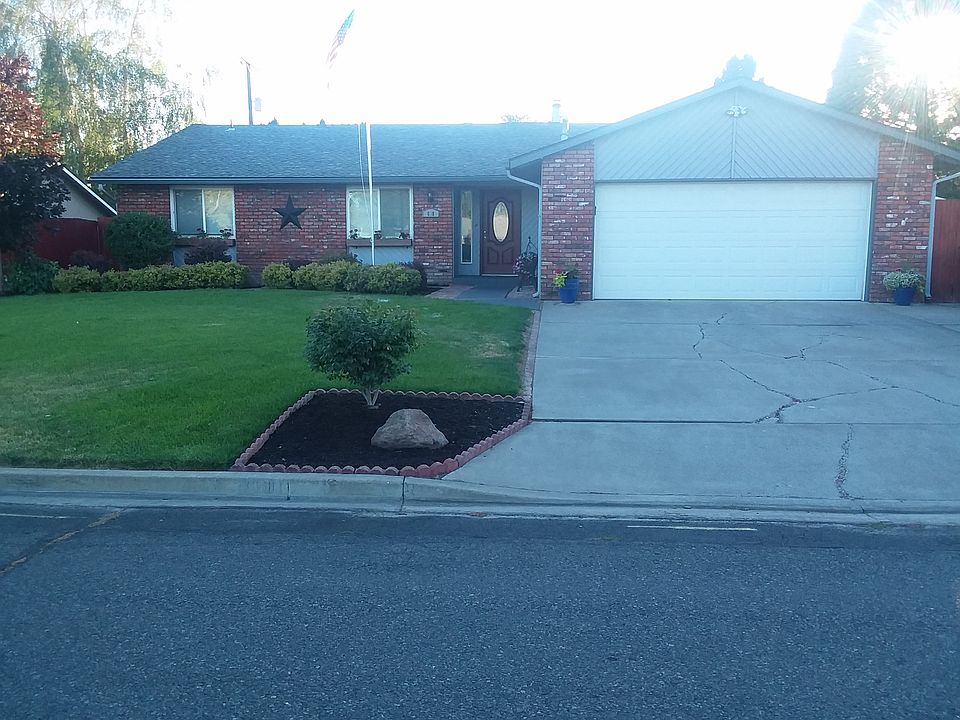 New 30 year roof and exterior paint. Some new paint inside, master w/ full bath, 2 closets, separate toilet area. FR w/ woodstove, FP, cathedral ceilings in LR and dining area. LR w/ brick FP, sliding glass doors to super large covered patio's. RV parking, double paned windows & nice yard!