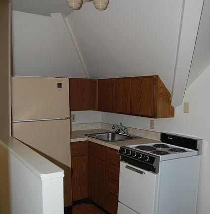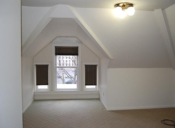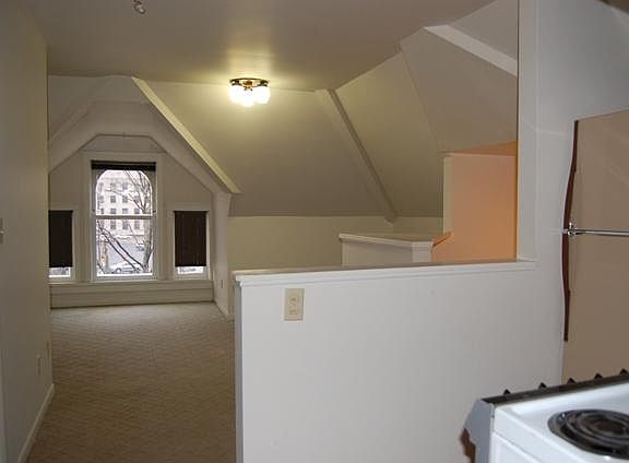 The apartment is very clean, quiet, and located within a secure house. It is located on the third floor (or loft) of an older, completely renovated historic house (adjacent to an historic house museum) and within walking distance of downtown Springfield. Two bedrooms, a combined living/dining room, and kitchen. It has central air conditioning, individual furnace, off-street parking, and a coin-operated washer/drier in the basement of the building. This third-floor attic apartment has garret ceilings, and a small galley kitchen. The apartment has extensive closet storage space. Additional secure storage units are also available in the basement. Ceiling fans and appliances are included. Landlord pays for garbage pickup, and tenant pays for gas and electricity. Property is managed by owner who works only a couple of buildings away. One-year lease and security deposit required. No pets allowed. $650/month. Call for appointment; see below for number. Landlord pays for garbage pickup, and tenant pays for gas and electricity.