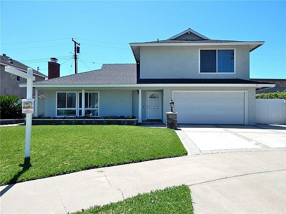 Major Price Reduction! AND Privacy!! Check out this upgraded 4 bedroom home! Well loved for almost 20 yrs. Located on a quiet cul de sac with no backyard neighbors! The formal entry opens to a huge living room with fireplace and custom mantle. Downstairs has been remodeled to create an open layout, great for entertaining! Custom gourmet island kitchen will delight your inner chef with custom birch cabinetry, stainless steel appliances, almost new refrigerator, dual fuel stove, granite counters and lots of storage. The dining area offers space and convenience with tons of natural light. The downstairs bedroom can also be used as your home office or gym. The additional three bedrooms and two bathrooms are upstairs, the hall bath has a jetted spa tub and access to huge attic storage space. The master bedroom offers two closets, an upgraded vanity and walk-in shower. Some other features of this home are: dual pane windows throughout, solid core interior doors and mirrored closet doors. Most exterior walls have added noise dampening insulation, newer 50 year Presidential roof and newer water heater. Large front yard and inviting porch, good size back yard, and the side neighbors are not too close - more privacy! This property has great parking, is conveniently located to freeway access, and is very close Chapman University. For those concerned about the freeway, this home actually backs to the Chapman Ave exit and it is much quieter than you would expect.