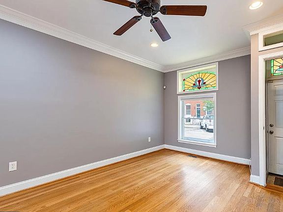 6-12+ month lease options. Two blocks from beautiful Patterson Park, this 3-bed, 2.5-bath home is the perfect mix of old-school charm and modern comfort. Exposed brick wall runs from the first floor all the way up the stairs and into the back bedroom. Hardwood floors throughout the first and second levels give the space a warm, inviting vibe. The finished basement is super versatile, with a half bath and plenty of storage. It's great for a third bedroom, home office, or cozy den. Upstairs, there are two spacious bedrooms and two full baths - one in the hall, and one in the master bedroom. Brand new stacked washer and dryer in the hallway as well. Out back, you've got a fenced area perfect for entertaining or chilling on the small deck. Please reach out with any questions or to schedule a tour!