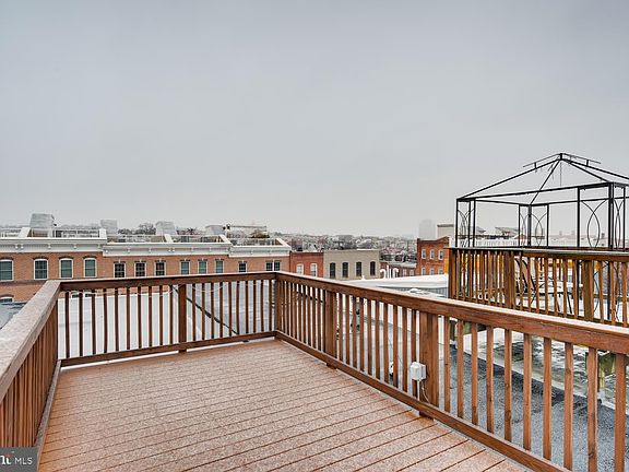 This 2 bedroom 1.5 bath house in the heart of Canton with updates galore, is just the home you~ve been looking for! It~s all about the details. Starting with the custom front door with made Maryland Flag stained glass transom, gleaming hardwood floors, renovated kitchen with granite counters, stainless steel appliances, and a breakfast bar perfect for you morning coffee. Freshly painted throughout, new carpeting on the upper level and a fully renovated bathroom and master bedroom. Door leading to balcony and custom staircase to roof top deck all made with composite that does not require treatment is a great spot for relaxing and enjoying stunning city skyline views. Additional possible 3rd bedroom in lower level. Fully fenced in back patio with refurbished gate adds to the outdoor space on each level. Don~t miss the opportunity, Welcome Home!