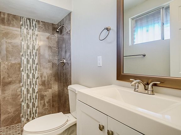 Fantastic remodeled 3 bed 2 bath home. Brand new AC, furnace & water heater! Kitchen features new cabinets offering plenty of storage space & new gorgeous quartz counter-tops. Seller will provide new stainless steel appliances including gas range, OTR microwave & dishwasher with accepted offer. Spacious floor plan with all new elegant ceramic tile flooring & new baseboards throughout with new carpet & pad in all the bedrooms. Both bathrooms with new vanities, new mirrors & new beautiful tile shower surrounds with deco accents. All new two tone interior & exterior paint. New brushed nickel light fixtures, ceiling fans, plumbing fixtures & door hardware throughout. Security bars & security doors for peace of mind. Private back yard features covered patio & storage shed. Agent/Owner.