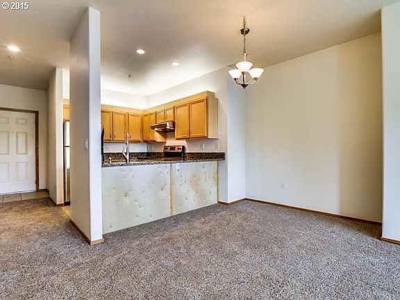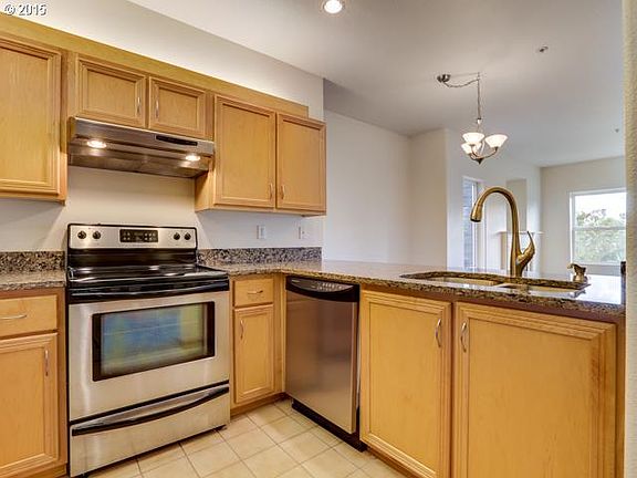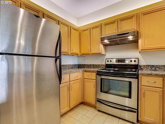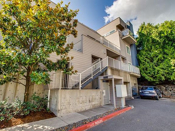 This comfortable condo is nestled in the hills of beautiful Southwest Portland. Lush greenery and a skillfully constructed rock retaining wall surround the contemporary building. Natural light spills into the bright living space from its multiple windows and the glass door leading to the balcony. The graceful gas fireplace warms this cozy room, while new quartz countertops, stainless appliances, and fresh carpet complete the space.