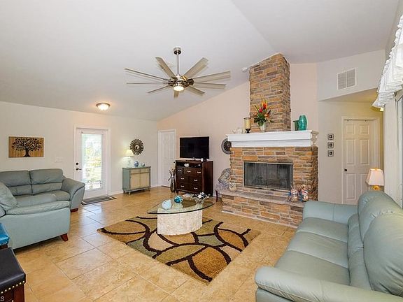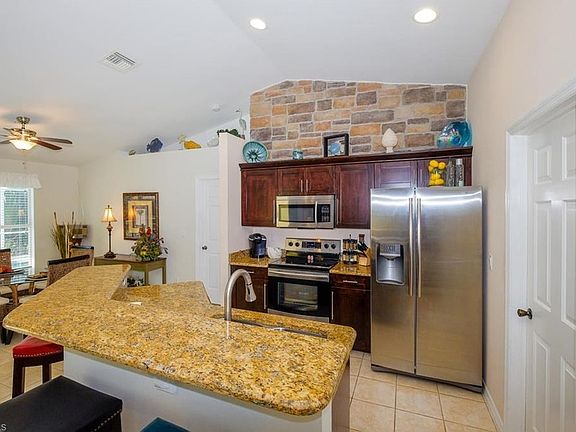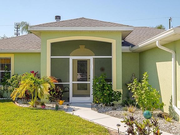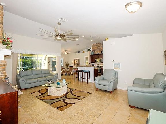 Beautiful Cape Coral location! From the moment you walk into this wonderful 3 bedroom, 2 bath pool home located within a quick walk to Palmetto Pines Country Club, you'll feel right at home. The beautiful updated eat-in kitchen features a huge breakfast bar, custom granite, matching stainless steel appliances with the dining area overlooking the sparkling pool and extensive lanai. The gorgeous living room is the perfect place to entertain, with a large custom stone fireplace to enjoy. The split floor plan features a spectacular master bedroom suite with a large walk-in closet, double granite sink vanity and enormous step-in tile shower. The home features a 2 car garage, custom tile throughout and indoor laundry. The enclosed generous lanai and pool area is the perfect place to relax with friends and family. This house has been meticulously maintained with a new HVAC in 2013 and is move in ready. Schedule your showing today! This is Florida living at it's finest!