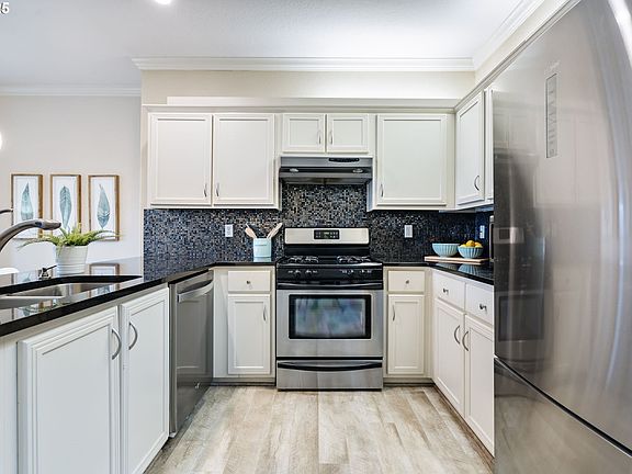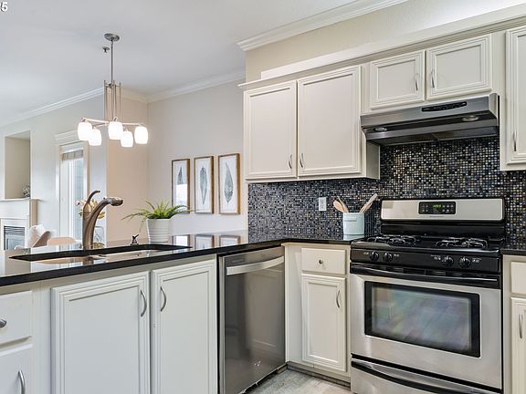 Gorgeous top floor condo in desirable Johns Landing neighborhood with amazing views of Mt. Hood. Kitchen features stainless steel appliances with eat up bar that opens to living room featuring gas fireplace. Covered walk out balcony provides plenty of space to grill and relax year round. Primary bedroom upstairs boasts double vanity bathroom, walk-in closet and incredible views of Mt. Hood. Home includes in-unit laundry and secured garage with two deeded parking spaces. Minutes to OHSU, Zupans, restaurants, parks, downtown & the river! Welcome home!