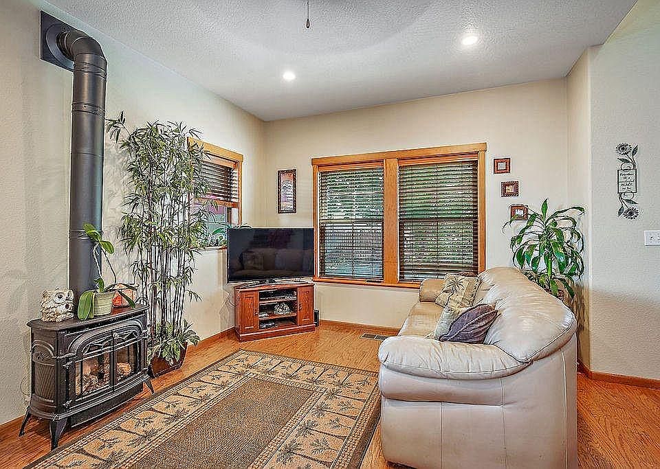 This well-kept home is located in a quiet neighborhood and is walking distance from downtown Central Point. The two-story home is tucked away on an end-lot along a small creek creating a quiet and private atmosphere. The surrounding trees add to the natural beauty of the home's hardwood floors and creates a perfect setting for two lovely outdoor spaces in the front and side yard. There is gas heating throughout the home for winter nights, with an additional electric fireplace in the living room that gives a cozy ambience. An open-concept kitchen/dining room with a sliding glass door opens to the side patio, perfect for extending the summer season. Each of the three bedrooms offers ample closet space, with a very large walk-in closet located off the master bedroom. Washer and dryer are located on the upstairs level, making laundry easy. Parking: 2 car garage with abundant storage Cooling: Central Air Heating: Forced Air Additional Features: Double pane windows, full laundry room with washer and dryer Outside: Patio off dining room just through sliding glass door, front patio overlooking creek Utilities paid by tenant: internet, trash, gas, electric, water Utilities paid by owner: Sewer Pets considered with one-time fee, 2 pets max