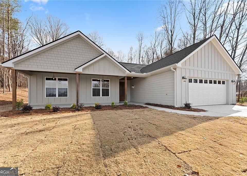 Modern Farmhouse in the Heart of Cleveland. 618 Thomas Road - a brand-new modern farmhouse perfectly blending comfort, craftsmanship, and country charm. Designed with open living in mind, this home features 3 bedrooms, 2 bathrooms, and nearly 3,000 total square feet including expansive covered porches and an oversized two-car garage. Step inside to an inviting great room with vaulted ceilings and abundant natural light flowing into the kitchen and breakfast area. The primary suite offers a peaceful retreat with a large walk-in closet and a beautiful bath filled with natural light featuring double vanities and a tiled shower. Two additional bedrooms and a versatile flex room create space for guests, an office, or a hobby room. Relax outdoors with 700+ square feet of covered porches, perfect for morning coffee or evening sunsets overlooking the peaceful surroundings and mountain views. Incredible blueberry bushes line the property on the right. Great driveway with additional parking pad or turnaround. This thoughtfully designed home sits in a quiet area on 1.37 acres in Cleveland, Georgia, just minutes from local schools, shopping, and dining. Enjoy small-town life with quick access to Helen, Sautee Nacoochee, and the North Georgia Mountains. Cleveland is known for its charming downtown square, farm markets, and outdoor adventures from trout fishing and hiking to exploring local wineries and waterfalls. Home Highlights: 3 Bedrooms | 2 Bathrooms | Flex Room - 1,776 Heated Sq Ft | 483 Sq Ft Garage | 700 Sq Ft Covered Porches - Vaulted Great Room with Open-Concept Living - Designer Kitchen with Large Island & Pantry - Primary Suite with Walk-In Closet & Tile Shower - Oversized Two-Car Garage - Peaceful Setting Minutes to Downtown Cleveland & Helen.