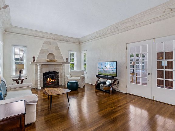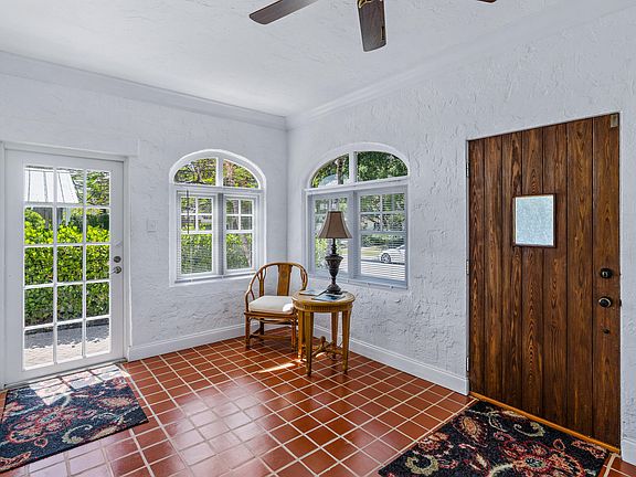 Charming 3 bedroom, 2 bathroom, single family home with hardwood floors and wood burning fireplace. Gorgeous front door, arched windows, decorative columns and more. Hurricane protected with impact windows and Storm Spot hurricane screens. Updated kitchen with granite and all appliances 2015/2016. Gas stove, gas water heater (2016), newer A/C (2016) and flat roof (2012 sealed in 2016). This home is immaculate! Large backyard with room for a pool. Close to downtown West Palm Beach