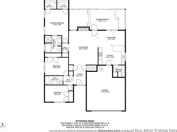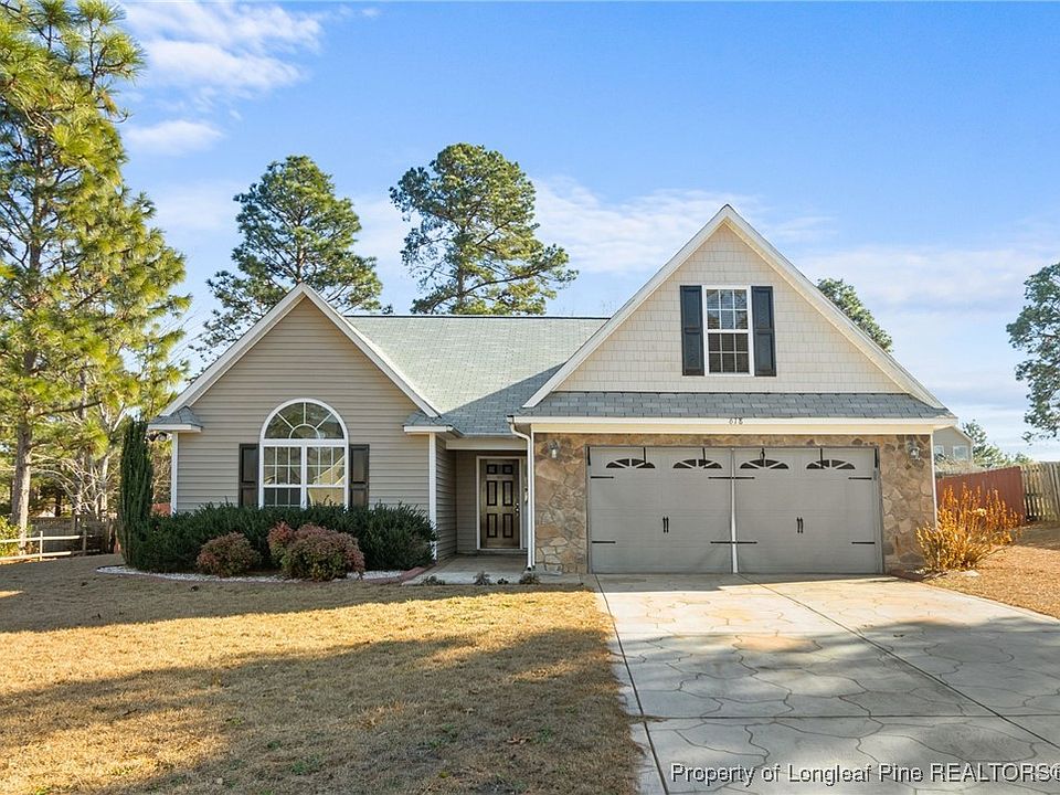 Come see this beautiful 3-bedroom 2 bath home with a bonus room above the garage, screened in back porch, and updated flooring and appliances. The living room features vaulted ceiling with an electric fireplace. Eat in kitchen with stainless steel appliances with ample counter space and the laundry room adjacent with the pantry. The master bedroom is located on the first floor with two large walk-in closets. Master bathroom includes a garden tub, stand-up shower, and double vanity. Two other bedrooms nestled off the living room with second full bathroom. Located upstairs, above the garage, is the bonus room, perfect for a game room, playroom, craft room or whatever your mind can envision. Enjoy the privacy of your backyard from your covered and screened in porch, perfect for that morning coffee time or great for entertaining. The big and spacious back yard is ready for family, friends, pets, and events. Close to Anderson Creek Golf Community, and just a short drive to Fort Liberty.