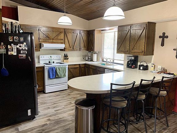 Great Rural property located on an acre lot in the Jimmy Hays Subdivision. This home features a large, entertaining living room with rock fireplace, wood panel ceilings and nice wood flooring throughout the living room, dining, and kitchen, generous-sized kitchen with kitchen bar, tasteful fixtures, 3 large bedrooms including a roomy master, 2 full baths, plus ample storage throughout. This property also features an over-sized 2 car garage, stamped concrete patio perfect for grilling, tree lined lot, and a 22X20 shed.