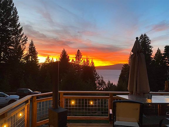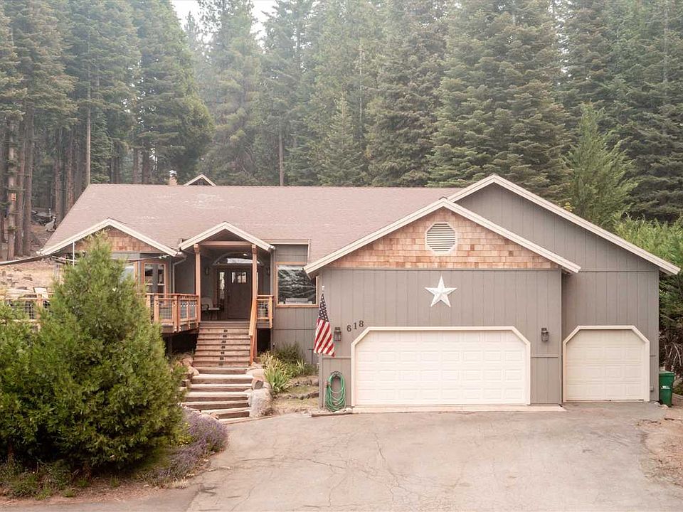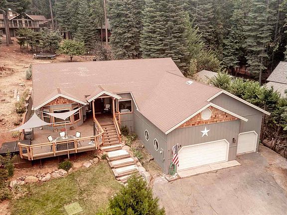 LIFE IS BETTER AT THE LAKE! Welcome home to your personal mountain retreat overlooking Lake Almanor. With tasteful updates throughout, this spectacular view home offers 3-Beds, 2-Baths & 1889+/-SqFt of living with massive great room open to the entry & living room with vaulted wood ceiling, freestanding woodstove with stone wrapped raised hearth, dining area with access to the covered rear deck, chef's kitchen with new designer appliances including vent hood, range, dishwasher, refrigerator, microwave, wine chiller & single basin sink with custom concrete counters & custom milled sycamore slab on the island, breakfast nook with views, spacious master suite with double sided fireplace, ceiling fan, new carpet & large walk-in closet with built-ins, en-suite bathroom with custom concrete counter, hammered copper sinks, stacked stone slate tile accents, jetted tub, step-in shower & private powder room, 2 guest bedrooms with ceiling fans & walk-in closets, gorgeous hall bathroom with milled slab countertop, new tub-shower tile surround & tasteful hardware, indoor laundry, 3+ car garage, big front deck perfect for entertaining & more. Other updates include a full interior remodel in 2019 with hickory hardwood flooring, stained interior wood & matching trim, low-E windows & sliding glass door, hot-tub with lake views, high efficiency HEAT & AIR, tankless water heater, stylish plumbing & electrical fixtures throughout including Recessed LED can lights, mature cherry tree & more.