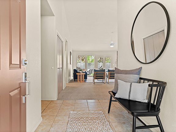 Welcome to this beautifully updated home nestled on a quiet dead-end street with no HOA—just minutes from BSU, downtown, the airport, and freeway access. This well-maintained 3 bed, 2 bath home features an open floor plan with vaulted ceilings, new carpet, and stylish LVP flooring throughout. Enjoy a cozy gas fireplace, fresh interior and exterior paint (2024), and new landscaping with a full sprinkler system in a private fully fenced yard. Relax with a book on the peaceful patio enjoying the mature trees and flowers. The kitchen offers brand-new appliances, tile floors, an electric range with gas hookups, along with a relaxing sun nook. New fridge, washer, and dryer are included! Additional highlights include Hunter Douglas blinds, a newer A/C and water heater (3 years old), and smart garage built-ins with work bench. Don’t miss this move-in-ready gem in an unbeatable location!