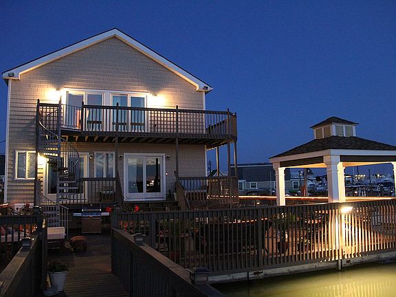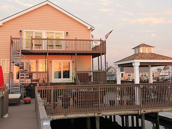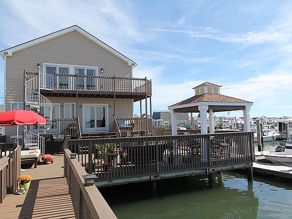 Year round home. One of a kind home in exceptional location on the waterway with 2 boat slips to accommodate a 50ft and 20ft. Built by owner for personal use. No cost spared inside and outside. Wildwood NJ, Number One Up and Coming resort area per Trip Advisor. Replacement cost over $800,000 based on granted property rights, location, superior construction material used and top of the line HVAC units and appliances. Spacious Luxury living on the waterway. Outside: Three decks overlooking the Intracostal waterway. Large Lower Deck will handle the large parties, kids pool, Jacuzzi, or just sit under the Gazebo and eat your catch of the day. Two boat slips 3 Floating docks: Main one with electric, water, TV and Internet wiring. Fish Cleaning area with Water, Electric and overhead lighting. First Floor: Kitchen equipped with best of the best STAINLESS STEEL appliances: Sub Zero refrigeration, electric range, two ovens for those family and friend gatherings, warmer, ventilated stove hood, dishwasher, drinking water filtration system, , garbage disposal, trash compactor, custom made solid oak cabinets, marble counter tops and ceramic flooring. Dining Room: Accommodates 10 seated easily to enjoy fine indoor cooking. Don''t worry about wind you are enclosed with Hurricane sliders which also allows for quick access to decks one and two. For reading, sitting and just chatting, use one of the two upper decks, the lower deck is for the big party, or the children/grand children to romp and play. All enclosed with sturdy fencing. Living Room: Large Living room for family and friends to sit around, watch some TV, listen to tunes, play games or just enjoy each others company. First Floor Bathroom: Jetted bathtub, modern tile, sink and fixtures. Laundry area enclosed within with new under over washer (water saver) and dryer. Second Floor: Large Master Bedroom, 45 in TV and fully wired for telecom. Master Bathroom: Jacizzo tub, separate glass enclosed multi jetted Shower with fashionable tile, two sinks and unique mirror, lighting and cabinets. Second Bedroom: Open your motorized shades and look at the waterway, or open your hurricane slider onto your second floor deck with your coffee in the AM; or watch the sunset with a nightcap. 3rd bedroom with direct access to upper deck through hurricane sliders. and motorized shades. Each bedroom has it's own HVAC controls, units provide exceptional Indoor Air Quality. One large Units provided for the first floor, Built in 1995, totally remodeled in 2015. No Hurricane or Flood Damage of any sorts.. Under the house is a crawl space that keeps all duct work, electrical and plumbing high and dry. Hard insulation used under the first floor boards, and on exterior walls. Air filters assure you of Indoor Air Quality. Easy maintenance. Interior walls are knotty pine slats downstairs and oak upstairs, all around except for kit and bathrooms. Exterior vinyl siding, and capped windows and soffits. Neighborhood Description Friendly, various ages in this 25 residence community on the water. All of us love the area, most have been living here for decades. Ownership moves from generation to generation so we all know one another and cannot wait for the summer months to come. Several families live here year round. 618 is arranged for year round living, I lived there myself year round before moving to TX. It is built to last, withstand harsh weather and enjoy with minimal upkeep. .