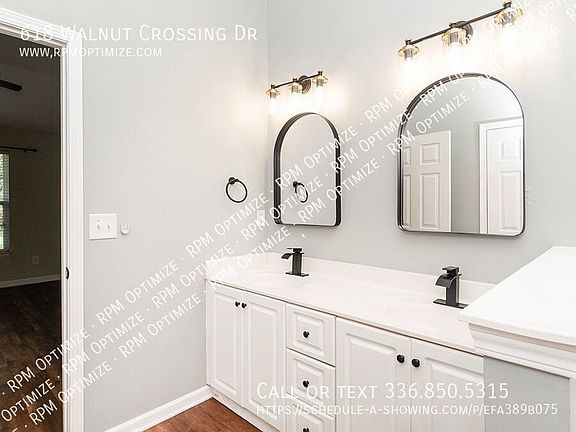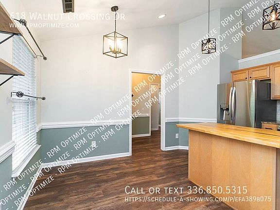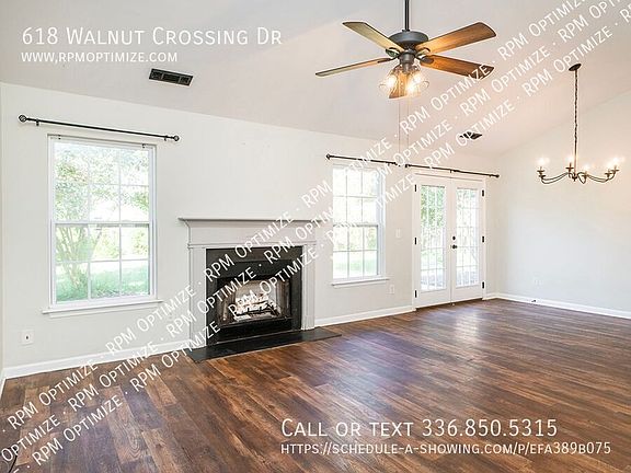 Welcome to this beautifully updated 3-bedroom, 2-bath, single-story ranch home in Walnut Crossing, a desirable Whitsett community. Perfectly situated near I-40/85, shopping, and Springwood Park, this home combines convenience with comfort and charm. Step inside to a spacious, open floor plan with abundant natural light. Luxury vinyl plank flooring in warm wood tones flows throughout, complemented by modern lighting and updated fixtures in every room. The heart of the home is the kitchen, featuring an industrial-style sink, stainless steel appliances, a butcher block island, granite countertops, and a bright eat-in area. The connected dining and living spaces create a seamless flow, enhanced by a cozy fireplace and soaring vaulted ceilingsperfect for gatherings or relaxing evenings at home. The primary bedroom is thoughtfully separated from the other two bedrooms, offering a spa-inspired bathroom, complete with a double vanity, garden tub, walk-in shower, and walk-in closet. The two additional bedrooms share a full bath, providing comfort and flexibility for guests or home office space. A mudroom and laundry room are conveniently located just off the garage, and the private fenced backyard is filled with mature flowering bushes and trees that add color and beauty year-round. This charming home is move-in ready and offers modern updates, thoughtful design, and a fantastic location. Don't miss the opportunity to make it yoursschedule your showing today! AVOID RENTAL SCAMS: Real Property Management Optimize is a licensed Real Estate Agency that exclusively markets this listing. We do not advertise on Craigslist and will never ask you to wire money or send funds through apps. Back Patio Corner Lot Double Vanity Exterior Pest Control Included Garden Tub Gas Fireplace Glass Shower Keyless Entry Kitchen With Island Large Fenced Yard Lvp Flooring Two Car Garage Vaulted Ceiling In Living Area