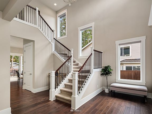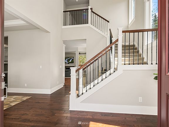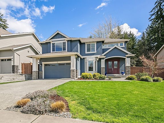 Custom crafted by American Classic Homes in the Enclave at Bridle Ridge. This home boasts elegance & fine craftsmanship thru-out. Foyer w/soaring 10-ft ceilings & grand staircase. Hdwd floors flow into the gourmet kitchen w/high-end applncs, quartz cmtrs & butler's pantry w/wine fridge. Fam rm w/stone frplc invites relaxation. Glass doors lead to the covered patio prepped for a gas BBQ. Main floor den (possible 5th bdrm). 2nd staircase off the family rm leads to upper lvl w/bonus rm, 3 secondary bdrms, & primary bdrm suite w/vltd ceilings & en-suite spa-inspired bath w/quartz cntrtps & dbl shower. Ovrszd 2-car garage. Idyllic fenced bkyd recently updtd w/turf. Newly installed hot tub. Min's from the city & all the Pacific NW has to offer.