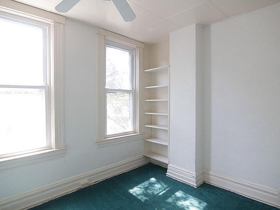 A full two-story duplex house apartment with three-bedrooms and two-bathrooms. Features: Big yard with a lush grassy lawn and lovely side garden, a private front and rear porch; and off-street parking area. There is a full modern kitchen with lots of cabinets. Large living room with decorative fireplace. Classic details: original hardwood floors, built in bookshelves and China cupboard. Cats and dogs are welcome. Great location in a beautiful historic community with limestone brick streets lined with huge & majestic shade trees.