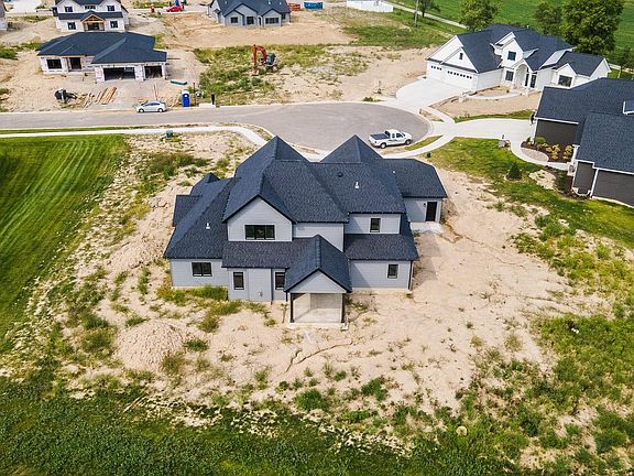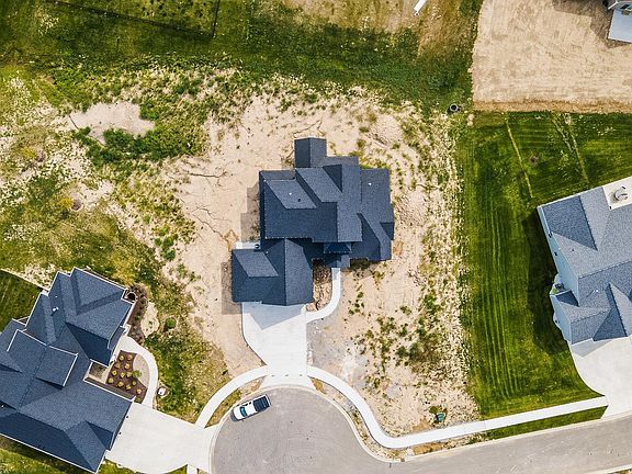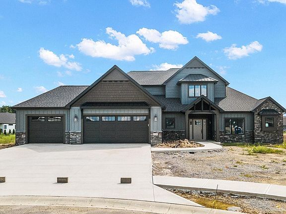 This 3500 sq ft home sits on over half an acre on a quiet cul-de-sac, and features 5 bedrooms, 3.5 baths, 3 car garage, and a covered back porch. Attractive curb appeal and the unique front porch detail are highly notable. This home showcases the bold, innovative & creative detail. Upon entering, you will be greeted with a 2-story foyer and arched entry leading into the living area and separate home office. The dual trey ceilings in the great room feature beautifully crafted wood details and fans. The adjacent kitchen/dining includes custom built alder cabinets, a sink-in island, quartz tops, unique range hood, a separate beverage counter with wine-rack, space for mini-fridge, and walk-in pantry. Entering from the garage, the built-in functional mud room bench provides plenty of storage and leads to the connecting laundry room that includes a hidden laundry chute from the 2nd floor. The 1st floor also provides the popular split bedroom design with 2 bedrooms sharing a full bath and an impressive master suite. You will enjoy one-of-a-kind detail work in the master lighted trey ceiling. The MBR features dual vanities, granite tops, curbless tiled shower with rain head, custom cabinets including built in storage between the framed mirrors and full length his/her linens, and large walk-in closet with window. The 2nd floor opens to a large loft with window seat and built-in shelving. A convenient kitchenette provides private upstairs living with 2 bedrooms and full bath. The ease of walk-in attic access and practical laundry chute from upstairs bath provide further amenities to your day-to-day home life. The spacious 3 car garage contains a utility closet for mechanicals and floor drains for easy clean out. Enjoy the back yard under a covered cathedral back porch. The yard is plumbed for a future irrigation system and all downspouts are tiled away from house. Grading and seeding of lawn are included and will be completed as weather permits. This home leaves nothing lacking, and is the quintessential home for any size family. A standard 2-10 Home Builder Warranty from RWC is also included in purchase price.