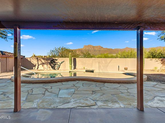 Enjoy magical views of the entire Superstition Mountain ridgeline and the beautiful Arizona desert while relaxing in your pool in a quiet neighborhood with one acre+ lots! This updated, 3-bedroom, split floor plan home was just remodeled with fresh paint inside and out, new window blinds, tile plank flooring, a brand-new roof with transferable warranty and a recently replaced water heater. Enjoy the 2x6 construction, large 3-car gar (long enough for a full-size truck w/xtra room to move around), 220 outlet ready for an electric vehicle charger or other needs, exterior RV elec hookup, RV gate for great access to a fenced backyard w/a matching shed for storage. Natural, low maintenance, desert landscaping with recent updates. This home is immaculate and turn-key ready to enjoy. Located moments from the I-60 Superstition Fwy for excellent fwy access to anywhere in the Valley of the Sun. Balance of Home Warranty tranferable to new buyer.
