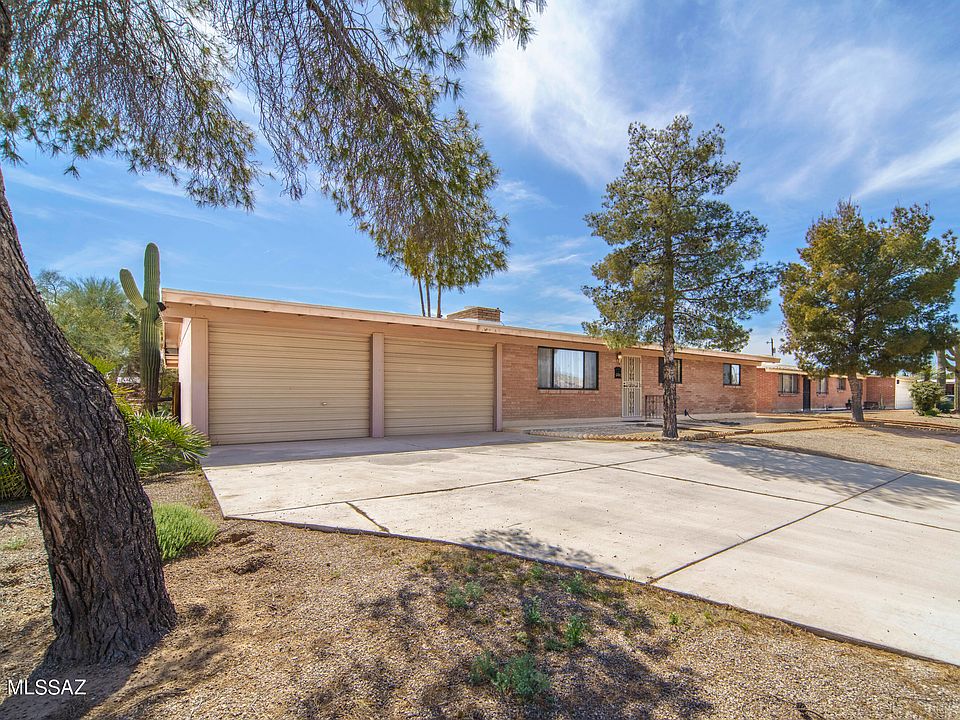 Mid-century 1963 home w/desirable brick construction. Cozy Wood burning fireplace. So much charm & No HOA! Tile throughout, NO carpet! Fabulous corner lot with no neighbors to the East. Updates include: 2020 New AC Unit, Heating system & Water Heater. Main Water line replaced from curb to home. Double pane windows. Sturdy Block Wall around back of home w/large wrought iron double gate (RV's allowed). Large back covered porch with pavers. 2 Car garage w/large workshop/storage room attached. Don't miss this one.