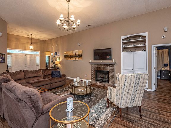 Well cared for open floor plan in much sought after Village Green. 12 Foot high ceilings, quartz counter tops, wood burning fire place, Each closet has a custom shelving unit enhancing storage space. Built in Entertainment center, along with a screened in porch and super cozy back yard. New Roof (2016) and New Heat Pump (2018). It's truly an impressive home.