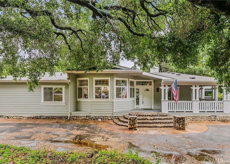 Tucked away in the beautiful hills of Santa Paula you'll find your own piece of paradise! This home exceeds all expectations and is income producing. Complete with a separate guest house, currently used as an Airbnb (approx. 870 sf). You'll fall in love with the mature oak trees, sprawling acreage and running creek. Perfect place for weddings or other events. You'll know you've arrived upon pulling into the circular driveway. You'll be greeted by a charming wrap around front porch that leads you to the front door. As you enter the home you'll find tall ceilings, vast windows, and modern textiles. So light and bright! Gorgeous kitchen offers Miele & Thor appliances including 6 burner cook top and double oven, oversized, vintage cast iron sink with a window that looks out to the front yard, custom teak island, marble backsplash and quartz counter tops. This floorplan is a dream! Living room has expansive windows and french doors that make the space feel like indoor-outdoor living. Incredible stacked stone fireplace. Spacious bedrooms, beautiful bathrooms, bonus room (with separate entrance), PLUS a huge master suite with attached retreat. Super convenient laundry/mud room --No lack of storage in this home. Energy efficient updates include: dual pane windows and dual zoned air conditioners. Additional features include keyless entry, water softener, RV hook-ups, dump station and de-attached 2 car garage. Guest house is positioned in a private area of property and has privacy fencing, attached deck, updated kitchen, cozy living room, 2 bedrooms, 2 bathrooms and indoor laundry. Guest house presents very boho chic! Property is zoned for horses. Lots of room for toys! Well producing citrus trees! So incredibly tranquil! You won't want to miss this opportunity! Inquire today!