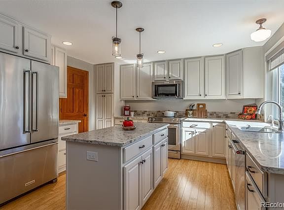 Don't miss an opportunity to own a Home in the coveted Water's Edge Neighborhood! Stunning recently remodeled Kitchen includes Bamboo Floors, KitchenAid Stainless Steel Appliances, Island, Quartz Countertops, and plenty of Cabinet space. The open and inviting floor-plan flows nicely from the Great Room into the Family Room featuring a Wood-Burning Fireplace and Dining space perfect for entertaining. This light filled Home features 5 Bedrooms and 3 Bathrooms. 4 Bedrooms are all located on the Upper Level. Spacious Master Suite with 5-Piece Bath, Walk-In Closet and not to miss Mountain and Lake Views! Large finished Basement includes an additional Bedroom, a Rec Room and plenty of Storage. Enjoy the Backyard and the enclosed Patio year round. 3 Car Garage with additional Storage. Rare Lakefront Lot is just a stone's throw to Hine Lake with walking trails. Ridge Recreation Center is just minutes away with a Pool, Ice Rink, Fitness Center and more. Easy Access to C-470 and the Mountains!