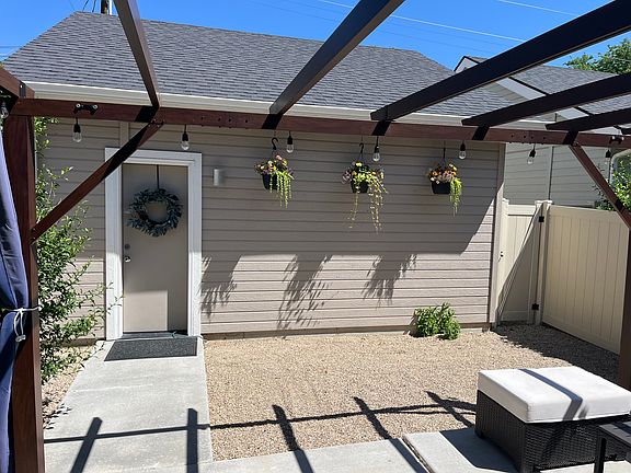 Gorgeous, modern home with a detached 2-car garage with alley access, and three bed & bath: 2 second floor master bedrooms with en-suite bathrooms and 1 main floor bedroom with full-bathroom. Front yard is thoughtfully xeriscaped with greenery and hanging baskets all on automatic drip watering system. Upon entering the home, the first door on the right is a large bedroom (perfect for a guest room or office) with a full detached bathroom next door. First floor flows into the open-concept kitchen and living room complete with large walk-in pantry with shelving and two closets for even more storage. Large, bright kitchen with granite countertops and chef-style gas range/oven. Spacious living room with a gas fireplace and plenty of natural light. The private back patio is perfect for lounging or entertaining- complete with pergola, the yard is lined with rosemary, lavender plants, a shade tree, and pink flowering bush. All backyard plants and hanging baskets are also on automatic drip line watering. There is also a detached 2-car garage with alley access and plenty of storage space. The entire second floor of the home is split into two master bedrooms, each with their own walk-in closet and attached bathroom with granite counter tops. Convenient washer and dryer located at the top of the stairs. - 2min to freeway access - 3min to St. Alphonsus Boise - 8min to Downtown 1 year lease No smoking Parking within the two car garage and additional street parking Utilities to be paid by tenants