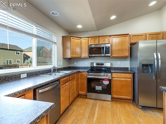 Discover this inviting 5 bedroom ranch-style home situated on a spacious corner lot, just moments away from Peterson Air Force Base and Ft. Carson. Featuring new carpet and fresh interior paint throughout, this residence feels bright and welcoming. The newly installed stainless steel appliances enhance the spacious kitchen, ideal for cooking enthusiasts. With a fully finished basement, enjoy ample family room space perfect for entertaining or relaxing. Additional features include central air plus a 5-piece master bathroom. Don’t miss the opportunity to make this charming home your own!