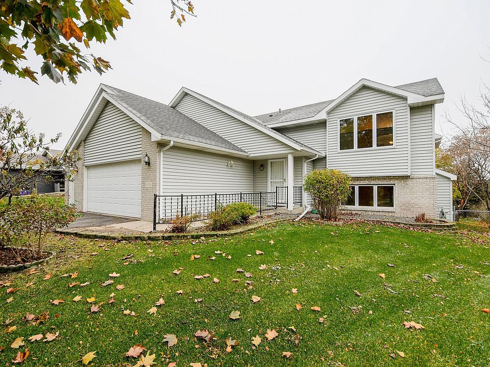 SHOWCASE WALKOUT ON A STORYBOOK PARK LIKE LOT! Private wooded setting with mature trees & gardens on a deep lot, fully fenced backyard with a large east facing deck AND upper balcony for easy summer entertaining. Bright and airy floor plan that captures the beauty of the outdoors with an amazing east facing sun room plus a lower 3 season porch. Not your typical split; warm and welcoming spaces with vaulted upper level, generous room sizes with spacious living room, huge shared eat-in kitchen/dining room with oak cabinetry, built-in wall pantry and breakfast bar. Two bedrooms up with 3/4 tiled bath. Expansive finished lower level walkout with gas fireplace in the family room, plus an oversized bedroom suite with adjacent full bath and a bonus flex room for office/den. Updated HVAC, siding & gutters, flooring including BRAND NEW CARPET, light fixtures, appliances. All bedrooms have walk-in closets. 3 car garage with workbench & storage. IMMACULATE! Easy access Hwy 10, eats/shops/parks.