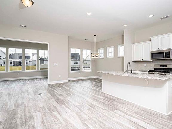 AVAILABLE NOW! This Wren plan defines efficient single-story living. Just beyond the foyer and garage, you'll enjoy having a dedicated drop-zone where backpacks, shopping bags, and shoes will have a home. The main living areas features Enhance vinyl plank flooring, 10ft ceilings and graciously integrates the kitchen, great room, and cafe dining area, making it perfect for entertaining and family dinners cooked on your Natural Gas Range. For even more living space, it has a spacious sunroom. In the front of the home, two large bedrooms flank a full bathroom, while your spacious master suite is tucked into the opposite corner, providing privacy when you need it most. The master bath includes a 5 ft. shower, a generous linen closet, and double vanity has a cultured marble countertop. A walk-in closet is connected to your master bath and, if you so desire, can also carry through to the laundry room. Putting away laundry doesn't get any more convenient. There is a spacious workshop in rear of the 2-car garage. Home site is sits along the pond. NATURAL GAS COMMUNITY! Security system is included with first 6 months of free monitoring! This home has been HERS Rated for efficiency.