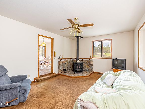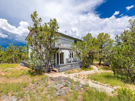 Backs forest service! This 3 bedroom 2 bathroom home is located down a country road, with close access to Flagstaff. The main house features 3 bedrooms, 2 baths, and a sunken living room with a wet bar and woodstove. This property is an adventurers dream and is loaded with outbuildings. Situated on a huge 2.5 acre lot, the home comes complete with a detached 2 car garage, a shop with another 1 car garage, 2 carports and even a historic travel trailer set up for visiting guests. Room for the biggest tools, toys and trailers. Woodworking, auto work or crafts. Tall pinon and juniper trees tower over the driveways and outbuildings of this fantastic parcel of land. All of this backs to 2 sides of forest service. Not to be missed, see the extra photos and virtual tour of this great home!