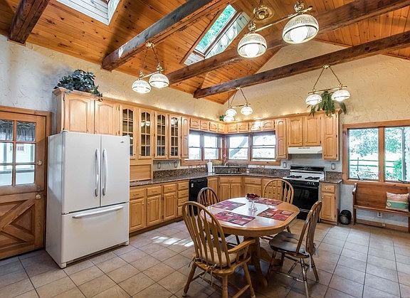 Charming log cabin equestrian property on 13 acres. Numerous outbuildings for extra storage & even a mobile home/trailer that can be used as an in law, college student or artists studio, endless possibilities. One outbuildings is heated and being used to run a business. Would make a great wood shop or auto detailing space. The log home features 3-bedrooms & 3 full baths. Updated kitchen is large enough for everyone. Views from the great room are breathtaking with the floor to ceiling windows. The finished basement has an additional kitchen with exterior access. In-ground pool and hot tub are just off the deck. Windows, roof & electrical is new & updated. Property is zoned A-1. Horse facility has a total of 16 stalls. 60'x120' indoor arena, 150'x300' outdoor arena. 3-large pastures, 6-run-ins. Tack room, trailer storage, large heated & air-conditioned viewing area with kitchen & full bathroom. Upper barn has hay storage. This is a turn-key equestrian facility. Great property!