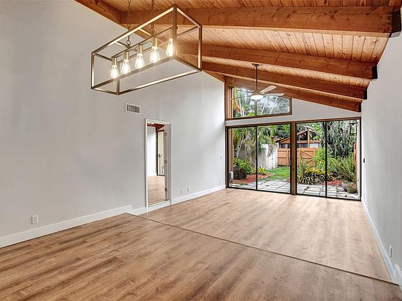 Gorgeous villa with a cozy cabin style. Totally remodeled unit!! Everything is brand new!! This home has 2 bedrooms 2 bathrooms and a nice size backyard. Vaulted wood ceilings and huge windows. New luxury vinyl flooring and modern baseboard throughout the house. Open Concept Kitchen with solid 42” cabinets, beautiful quartz countertops, stainless steel appliances, bright backsplash. Large bedrooms with walk-in-closets and additional storage. New modern bathrooms. Sophisticated lighting fixtures and accessories. New electrical panel. Newer AC. 2 parking spaces. Community features heated pool, tennis court, handball court, picnic area, dog parks. Low Hoa fee $88/month. Pet friendly community. Great location close to I95, Turnpike & shopping. Easy to show!